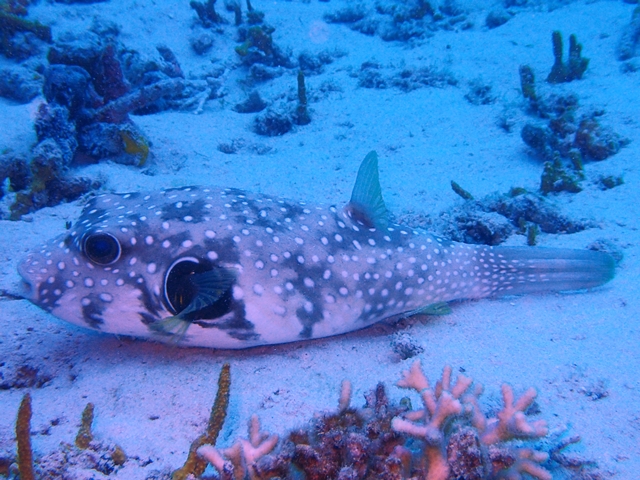 英語名はWhite-spotted puffer(白点のあるフグ)、見たままですね。
