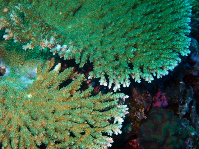 薄いテーブル状の群体で、卓上部の厚みは2cm未満です