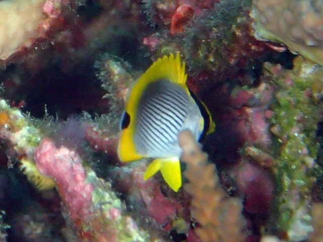 尻ビレ基部に黒色斑、幼魚の尾柄に目立つ黒色斑があります。