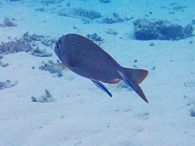 シロダイやナガメイチに似ますが、尾ビレの上下の先が丸いことで見分けます。
