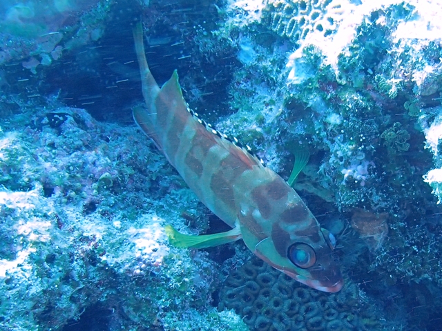 体長は30-40cm程あり、沿岸のサンゴ礁域や岩礁域に生息しています。
