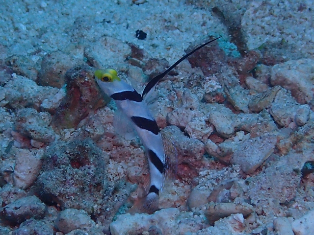 体長は4-5cmで、サンゴ群落域の砂底で、テッポウエビ類と共生します。