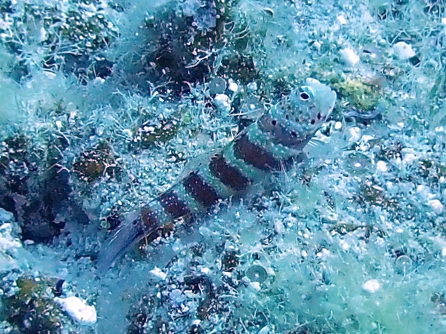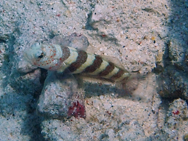 ダンダラダテハゼと似ていますが、クビアカハゼは赤色の横帯が