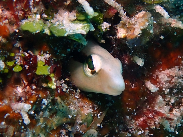 体長は8-14cm程度、活発に泳ぎ回るらしいのですが、穴から顔を出す姿をよく見ます。