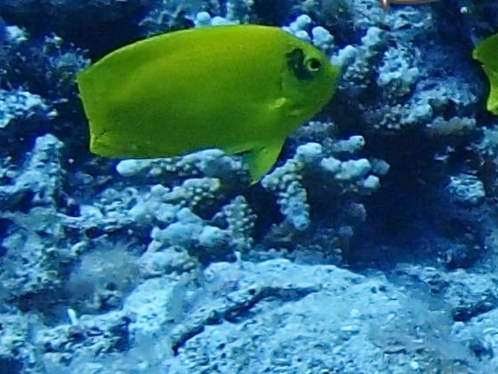全身鮮やかな黄色で、眼の後ろが殴られてできる痣のように薄く黒くなっています。
