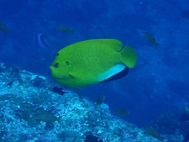 鰓蓋の後ろには茶色っぽい斑、口は厚めで青色をしています。