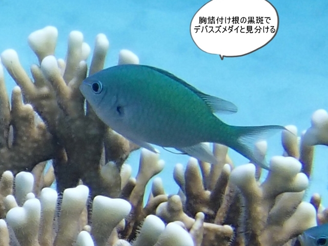 こちらは胸ビレ付け根に黒色斑があることで見分けます。
