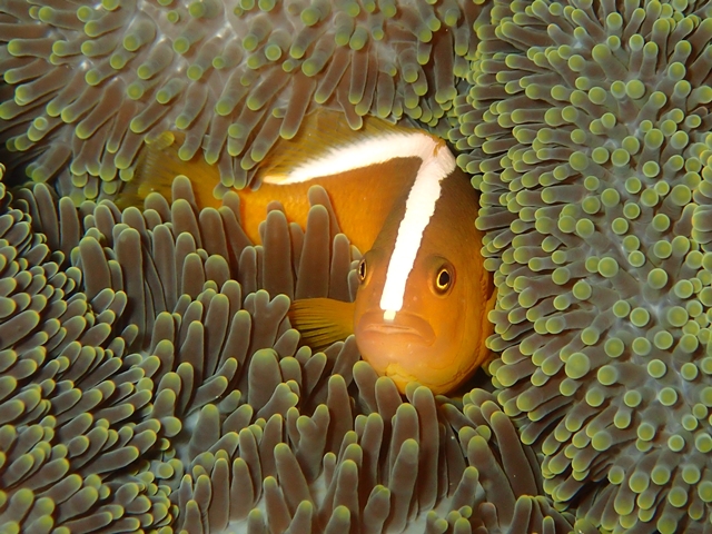 体長は15cm前後で、沖縄本島以南で岩礁域のシライトイソギンチャクなどと共生します。