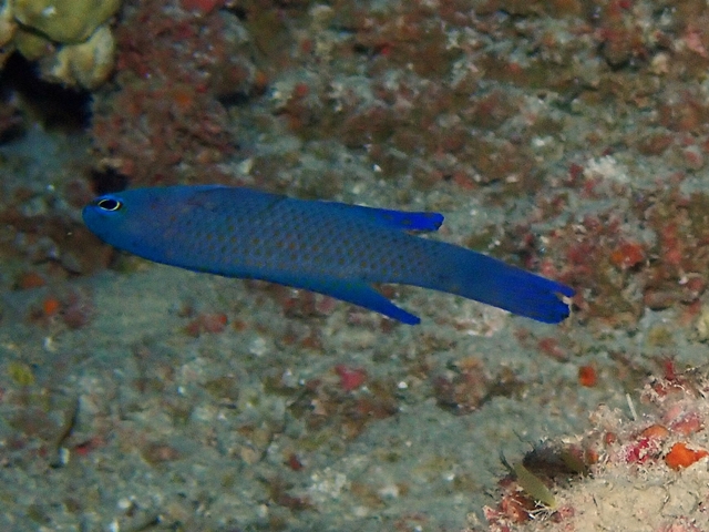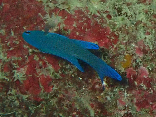 体色は美しい青色で、尾ビレが深く2叉しています。