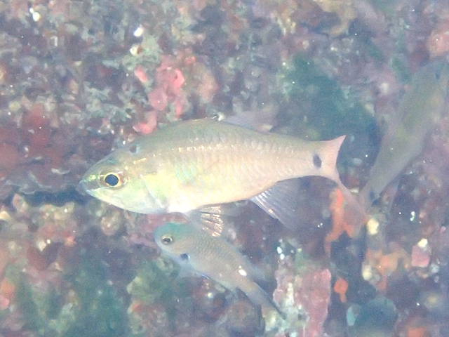 似ているネンブツダイは、頭部後ろの黒色斑がありません。