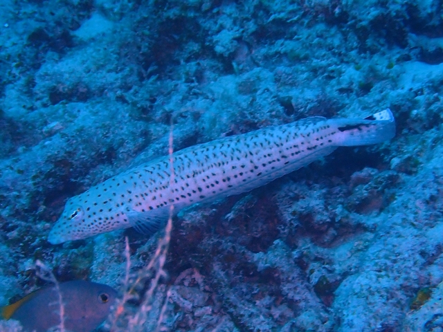 体長は20cm程度で、体色は白色、体中に褐色点があります。