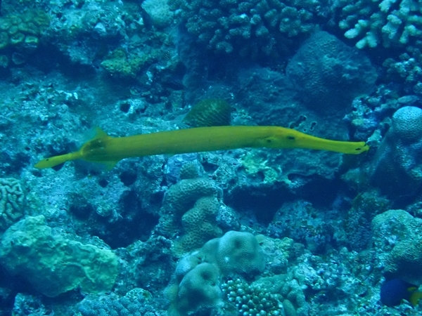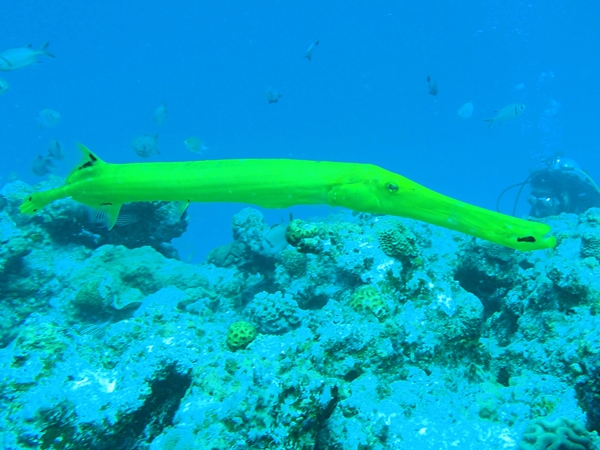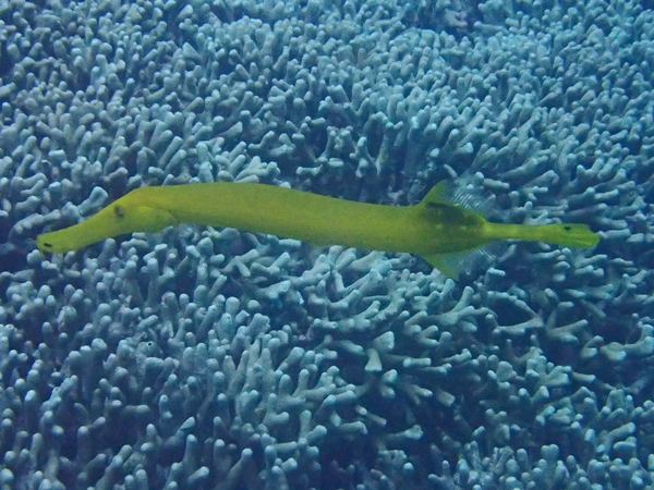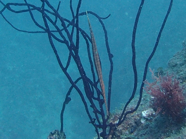 その特徴から遠くからでも分かりやすいのですが、海藻など周りの色に擬態して