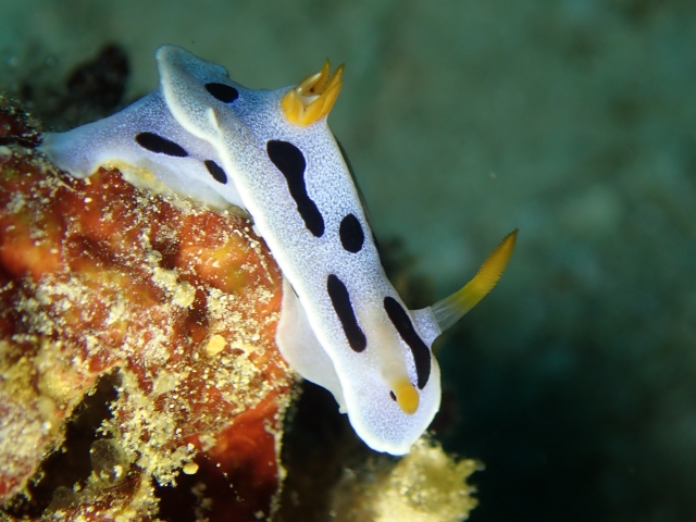 似ているダイアナウミウシは二次鰓は先端が黄色、根元が白色です。