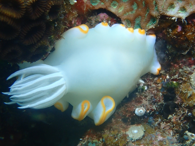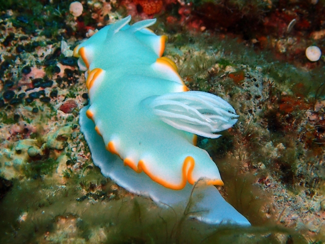 外套膜周縁部には橙色の線が入り、大きく波打ちます。