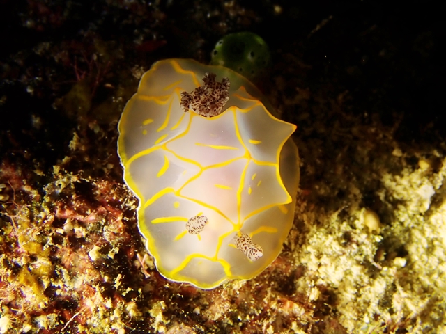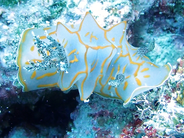 外套膜周縁は白色の細線、その内側は橙色の線で囲われます。