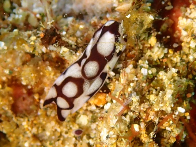 体表全体に黒褐色の大きな輪状の斑紋が入ります。